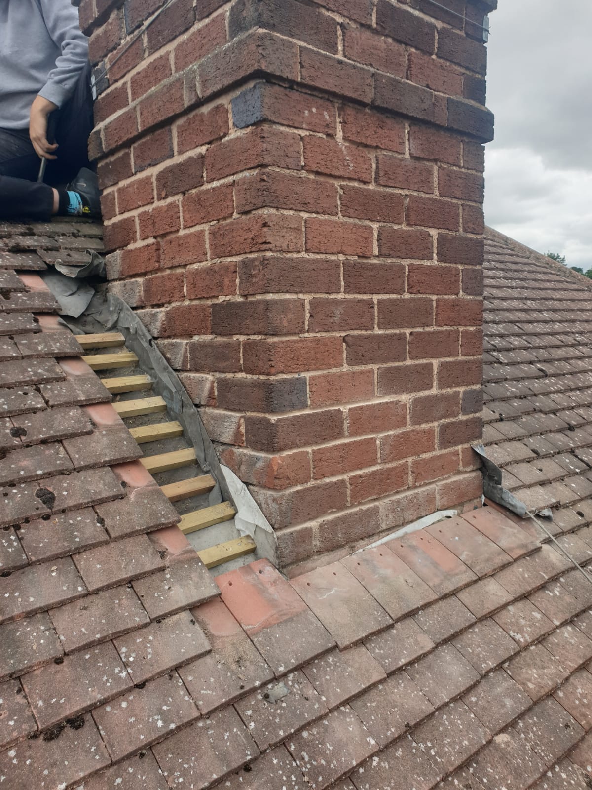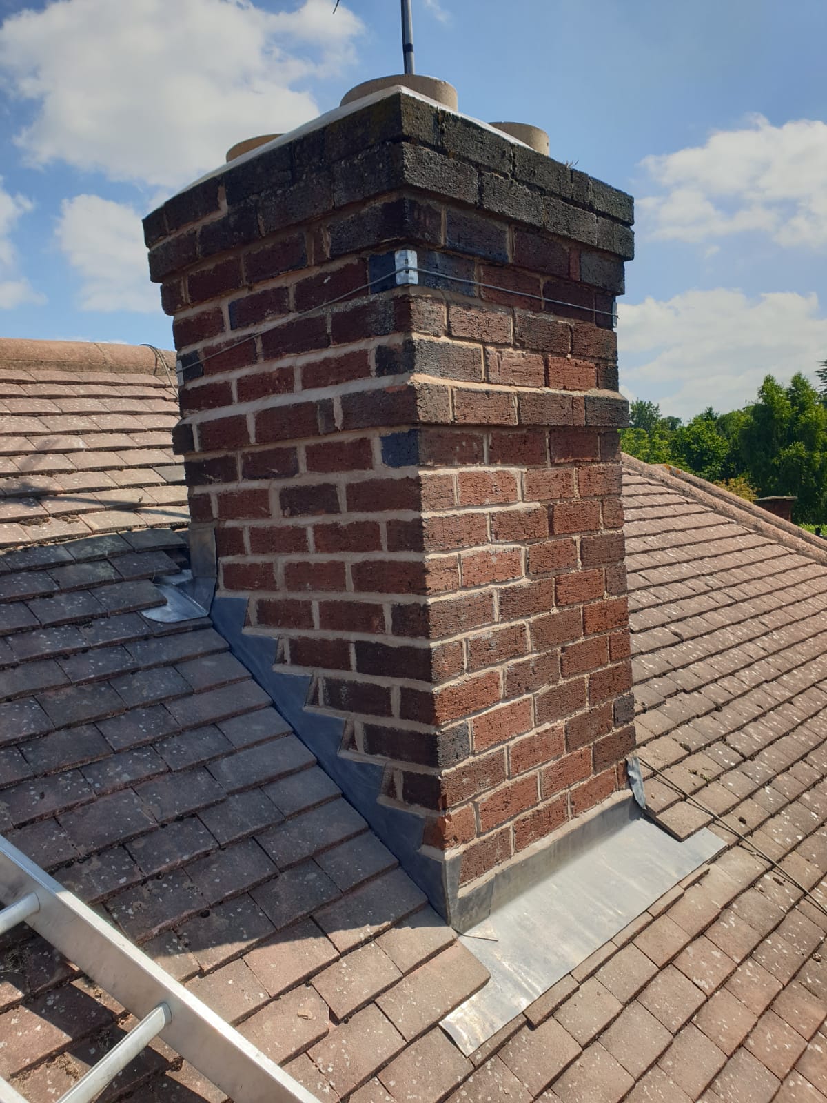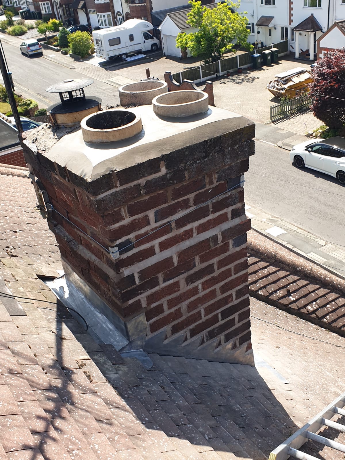 Description: Full chimney repair work carried out in Coventry by Chad & Alex. Leadwork, re-pointing and re-flaunching the head of the stack.