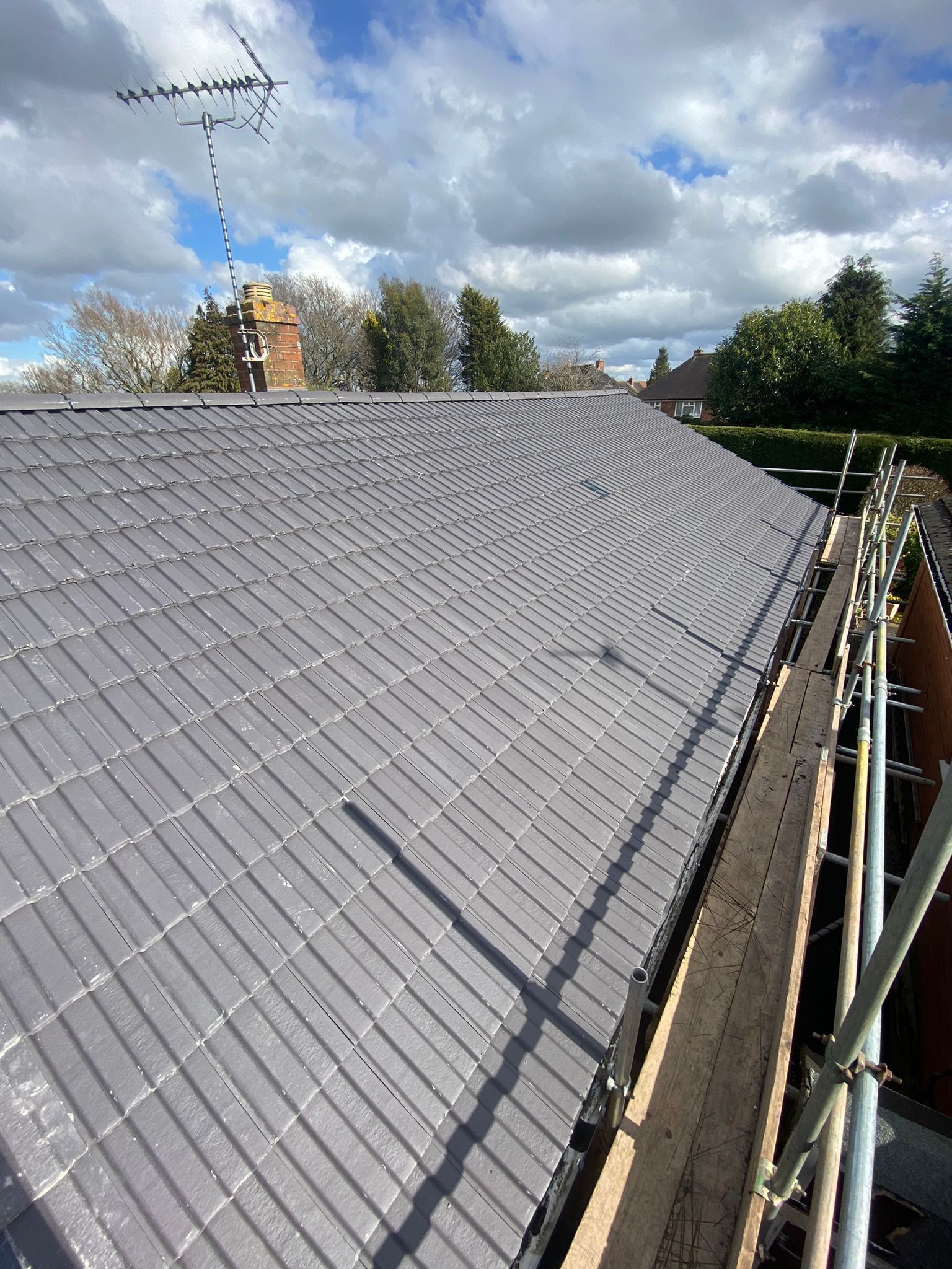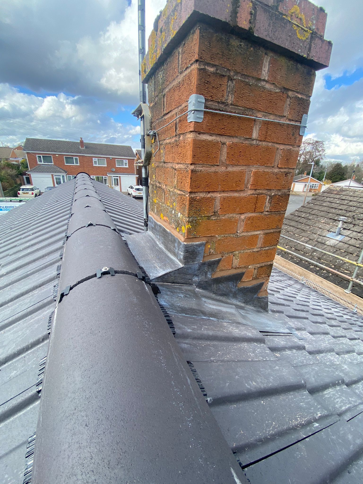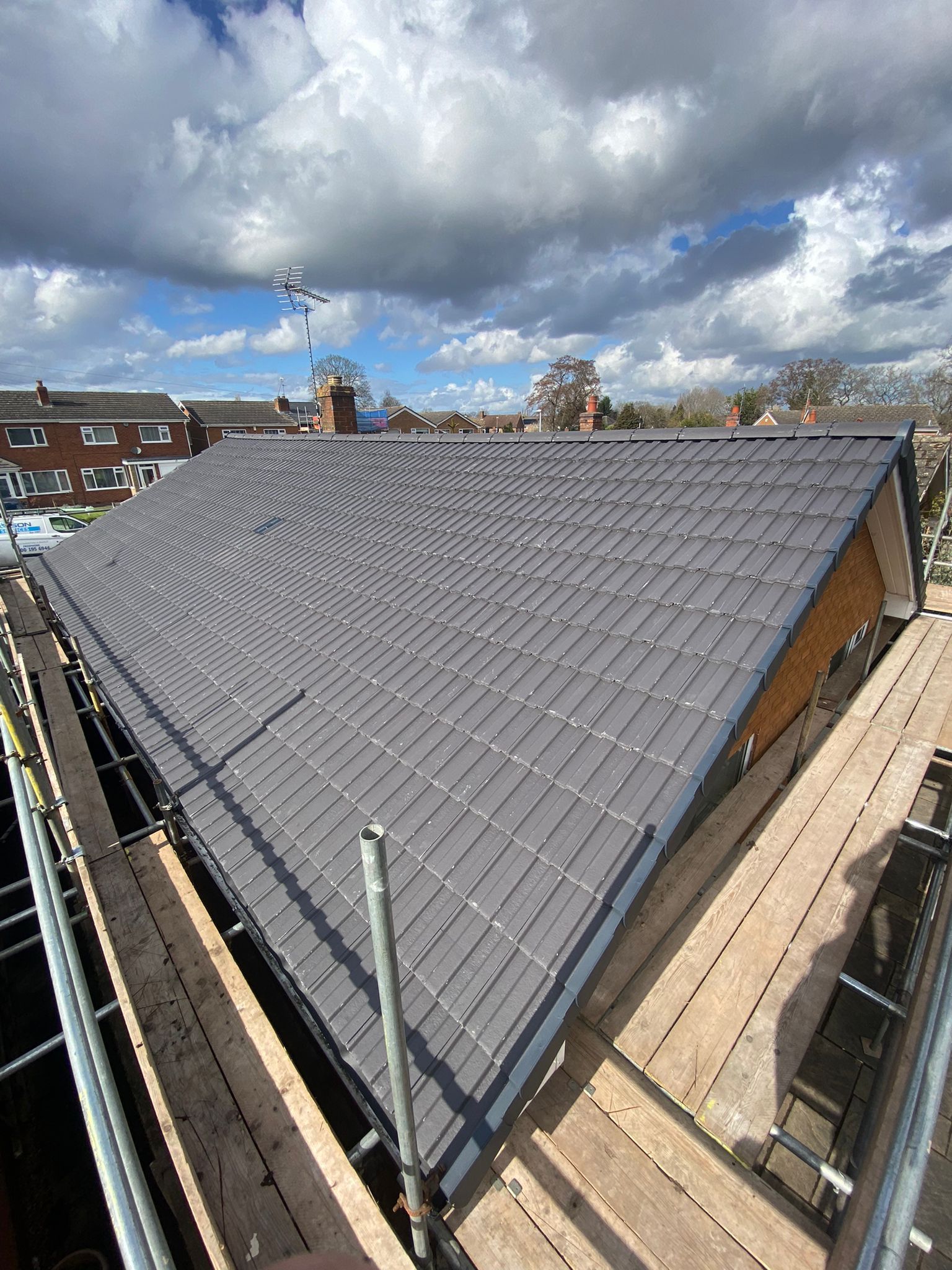 Description: Replacement residential roof using Marley smooth grey major tiles, new code 4 leadwork and a dry ridge and verge system. Completed by Chad and Josh C March 2023