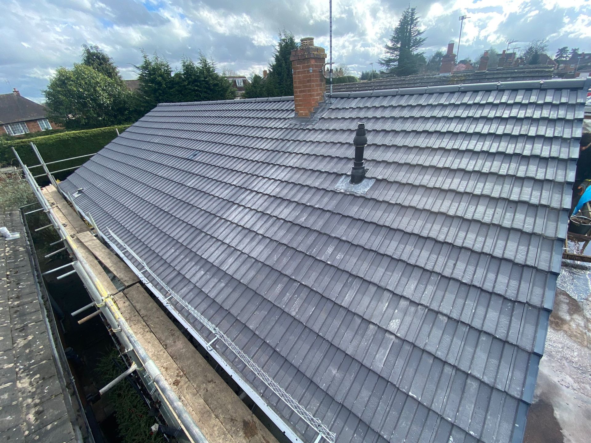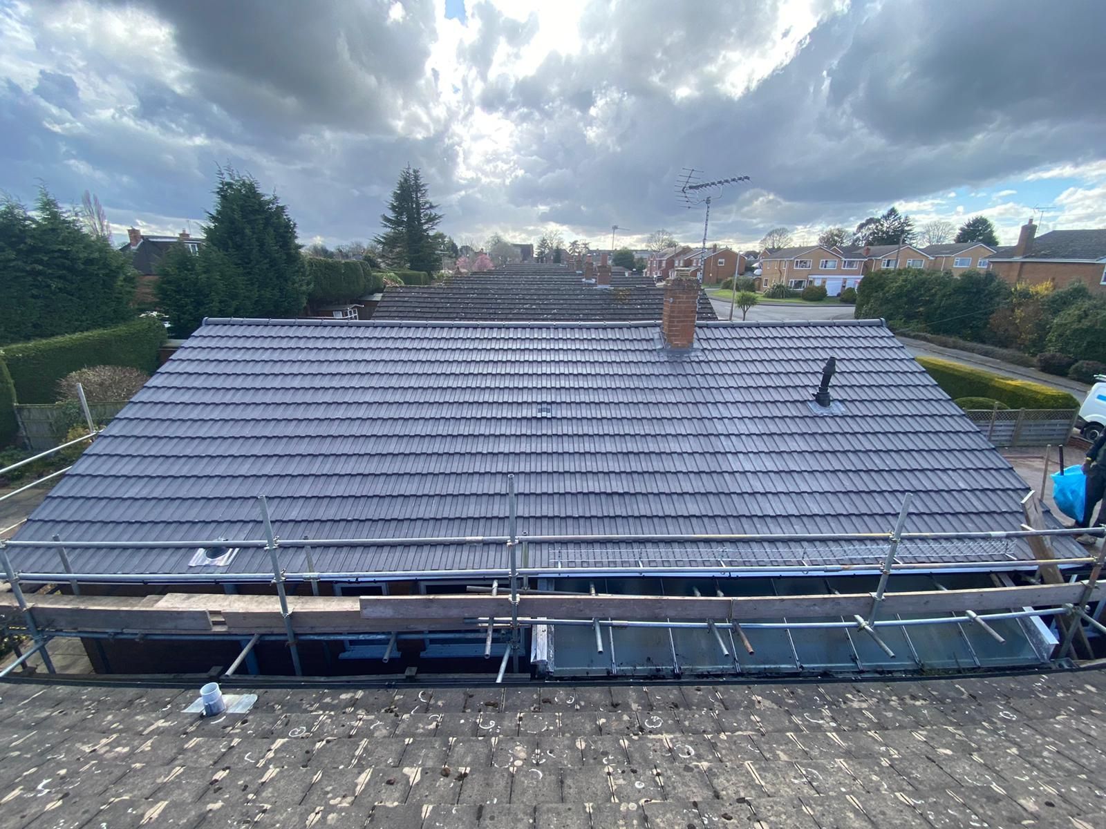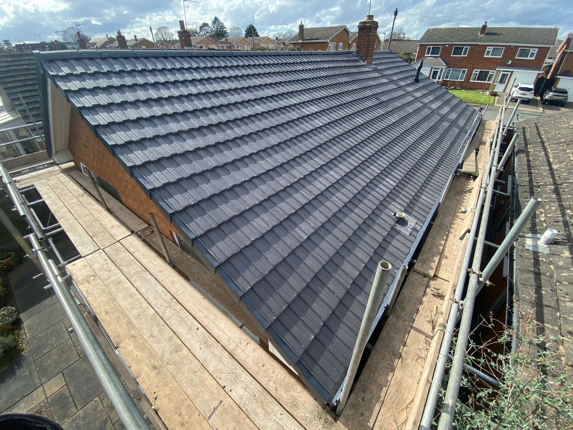 Description: Replacement residential roof using Marley smooth grey major tiles, new code 4 leadwork and a dry ridge and verge system. Completed by Chad and Josh C March 2023