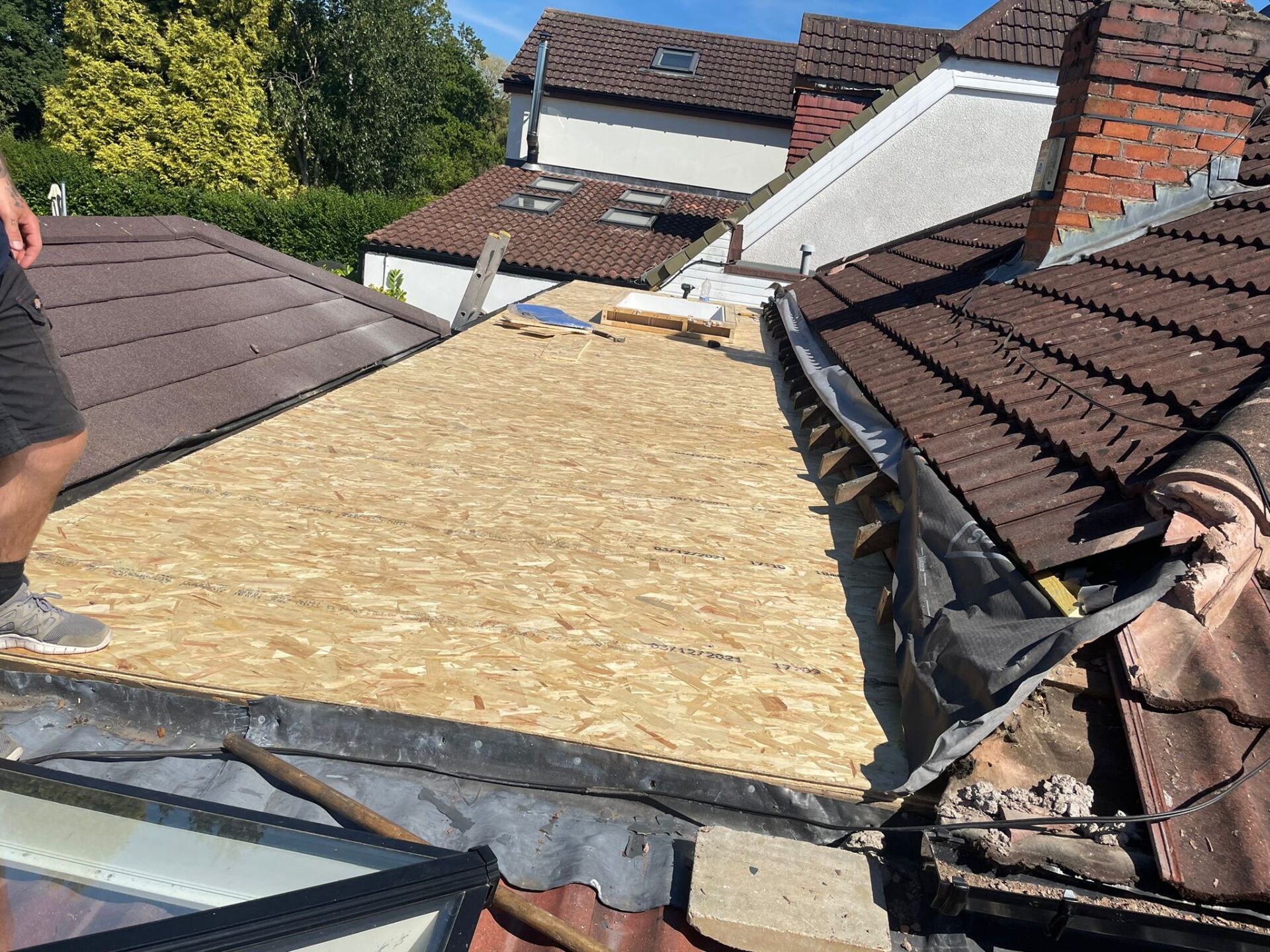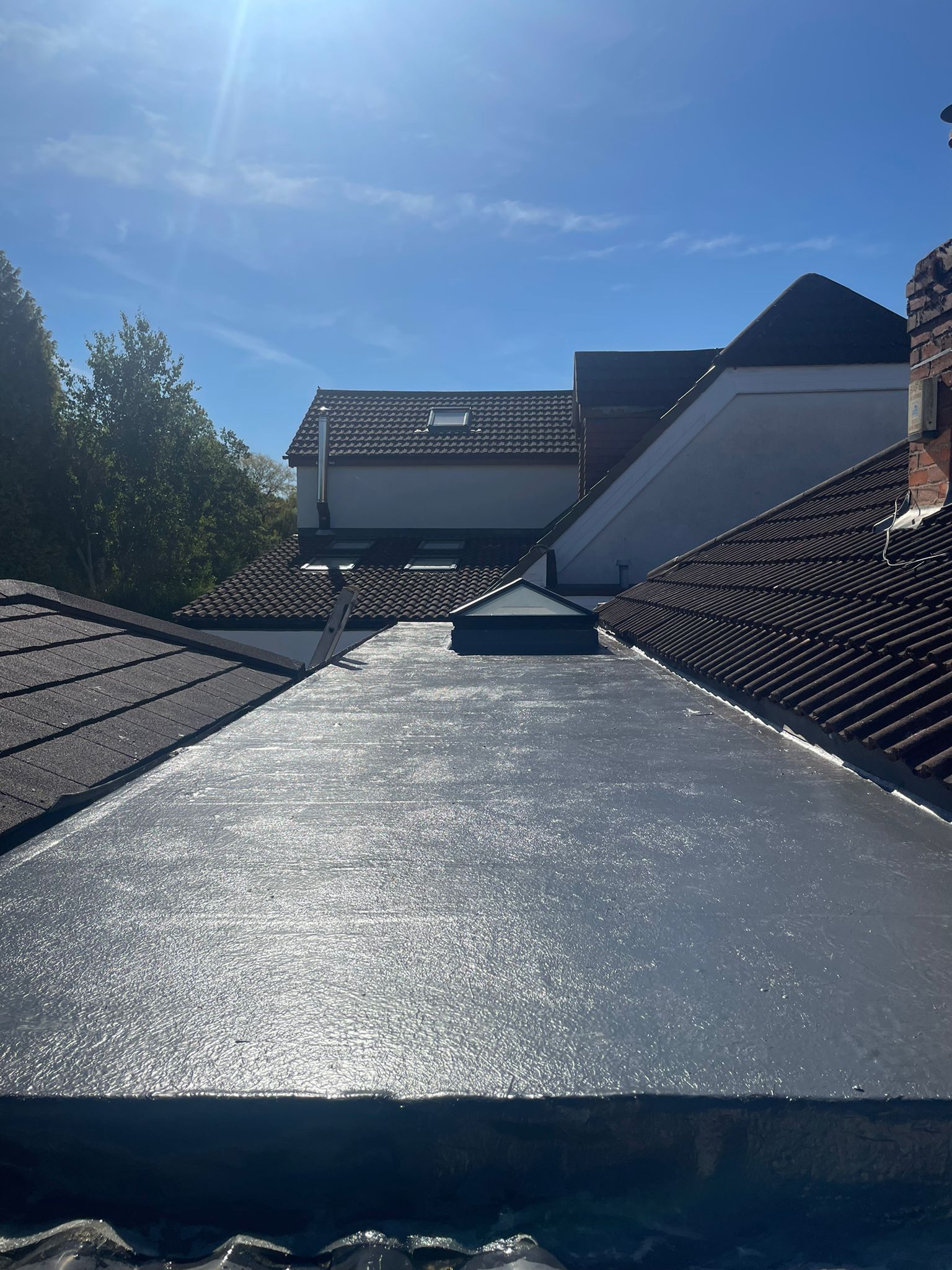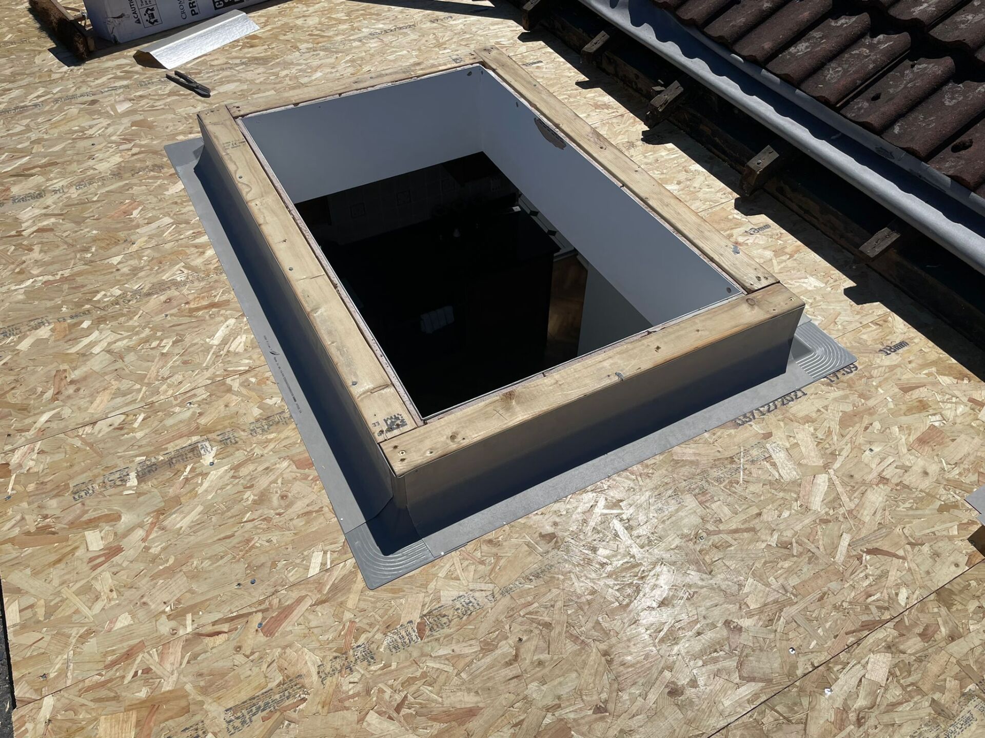 Description: Full flat roof renewed in GRP by our specialist Reece and a skylight installed.