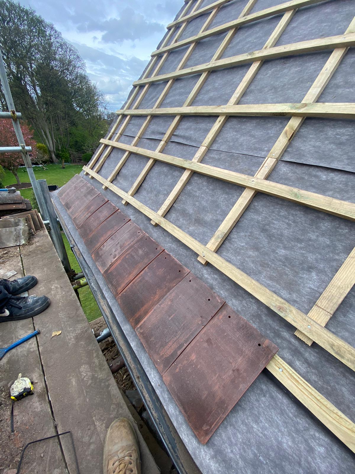 Description: Complete mortar work replacement and part roof replacement (inclusive of lath and felt work) all in keeping with local heritage and working within Bournville Village Trust requirements. Completed by Chad and Alex April 2022