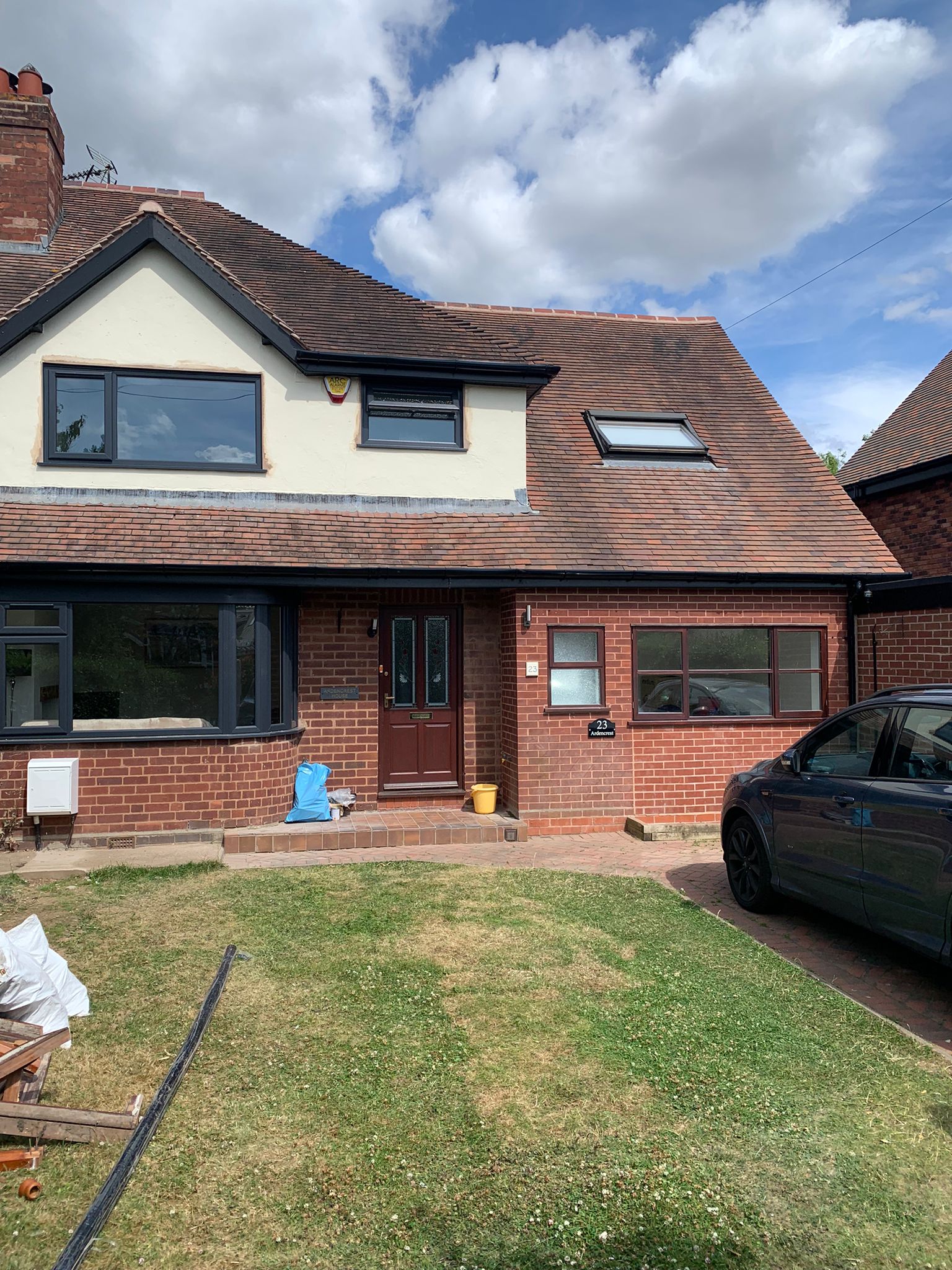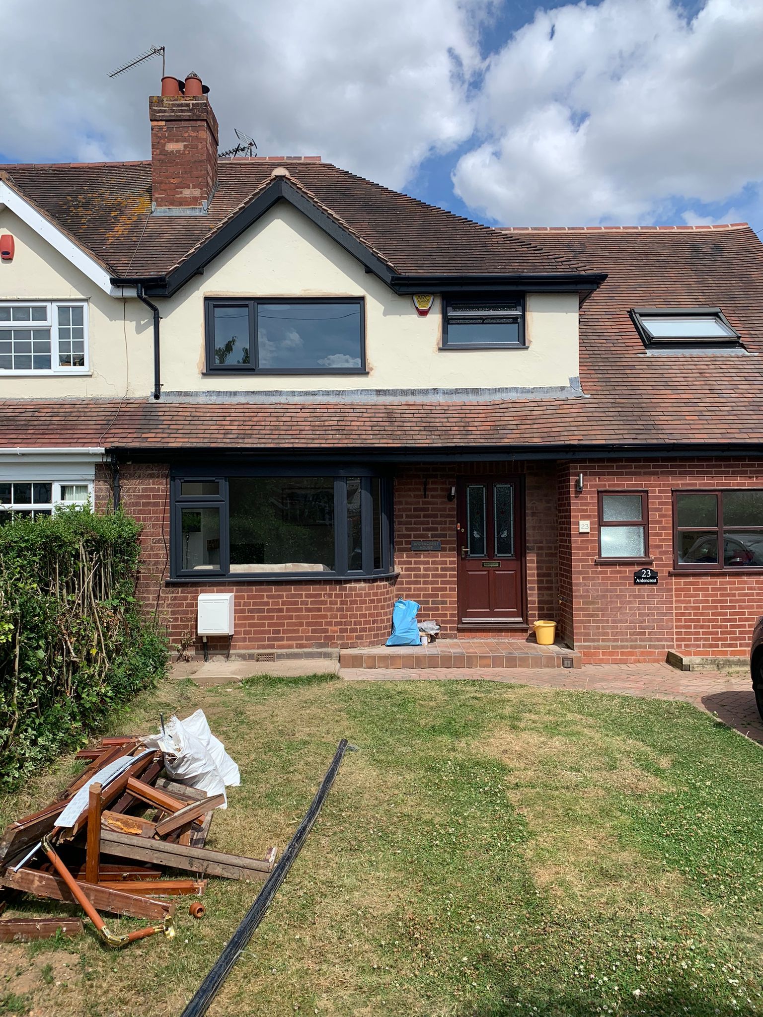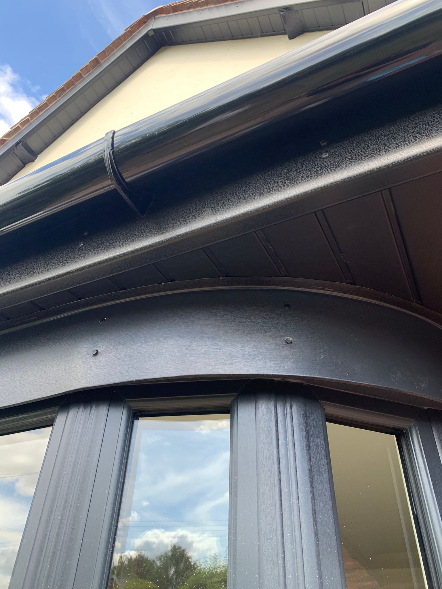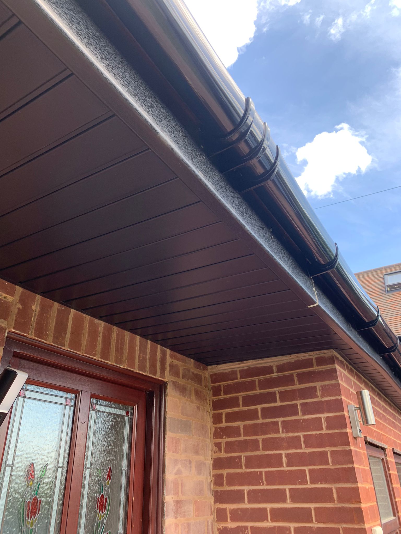 Description: Complete Fascia soffit & gutter systems removal, UPVC full replacement, ridge tiles re-bedded, carried out by Anthony & Mike July 2022.